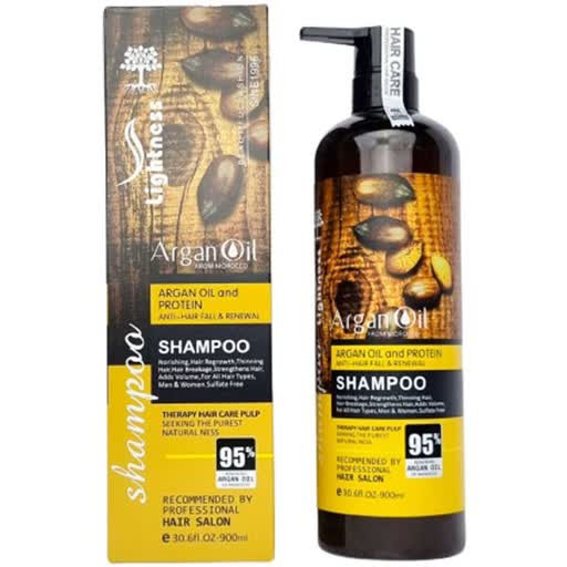 شامپو لایتنس دارای 95 درصد روغن آرگان خالص بوده که موجب رفع خشکی و آبرسانی مو می شود. شامپو آرگان لایتنس با داشتن پروتئین های مفید، مو را ترمیم و تغذیه کرده و برای استفاده انواع مو مناسب می باشد. شامپو روغن آرگان لایتنس به علت فاقد سولفات بودن برای موهای کراتین شده نیز قابل استفاده است.